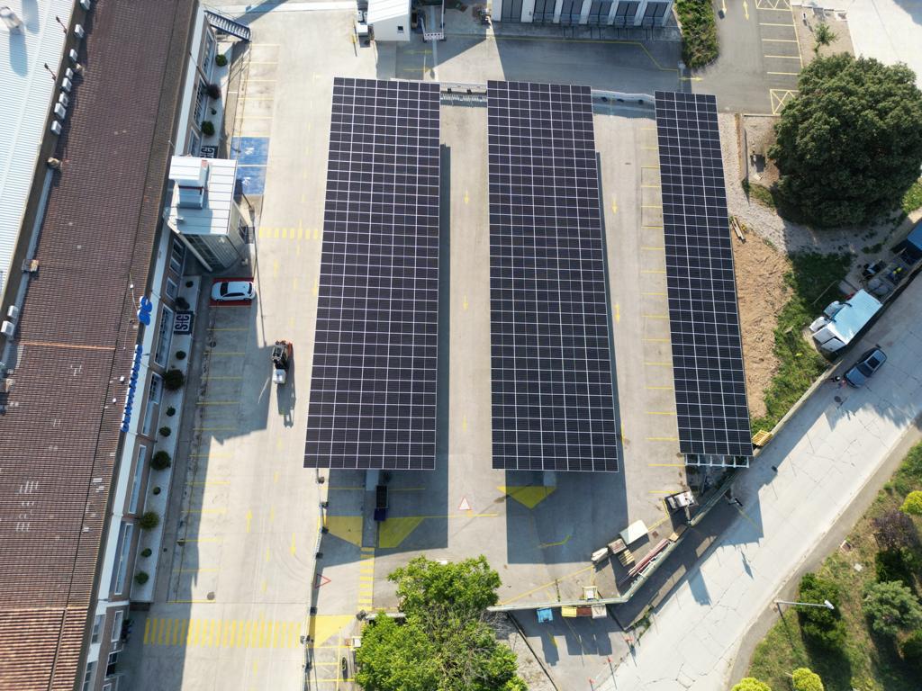 De zonnepanelen die op het dak van de solar carport gemonteerd zijn vangen de zonne-energie op en zetten die om in elektriciteit die vervolgens worden gebruikt om de verlichting van de carport te voeden, elektrische voertuigen op te laden, of terug te leveren aan het elektriciteitsnet voor een extra bron van inkomsten.