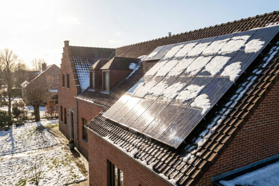 In de meeste situaties is sneeuw op zonnepanelen een tijdelijk probleem: ze smelt of glijdt meestal vanzelf weg zodra de temperatuur wat stijgt of de zon zich laat zien. In onze contreien is het aandeel winteropbrengst beperkt, waardoor het gemiste rendement door een paar sneeuwdagen doorgaans verwaarloosbaar blijft.